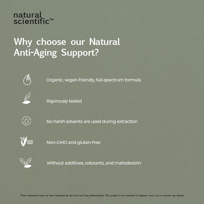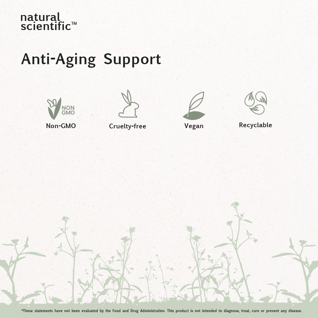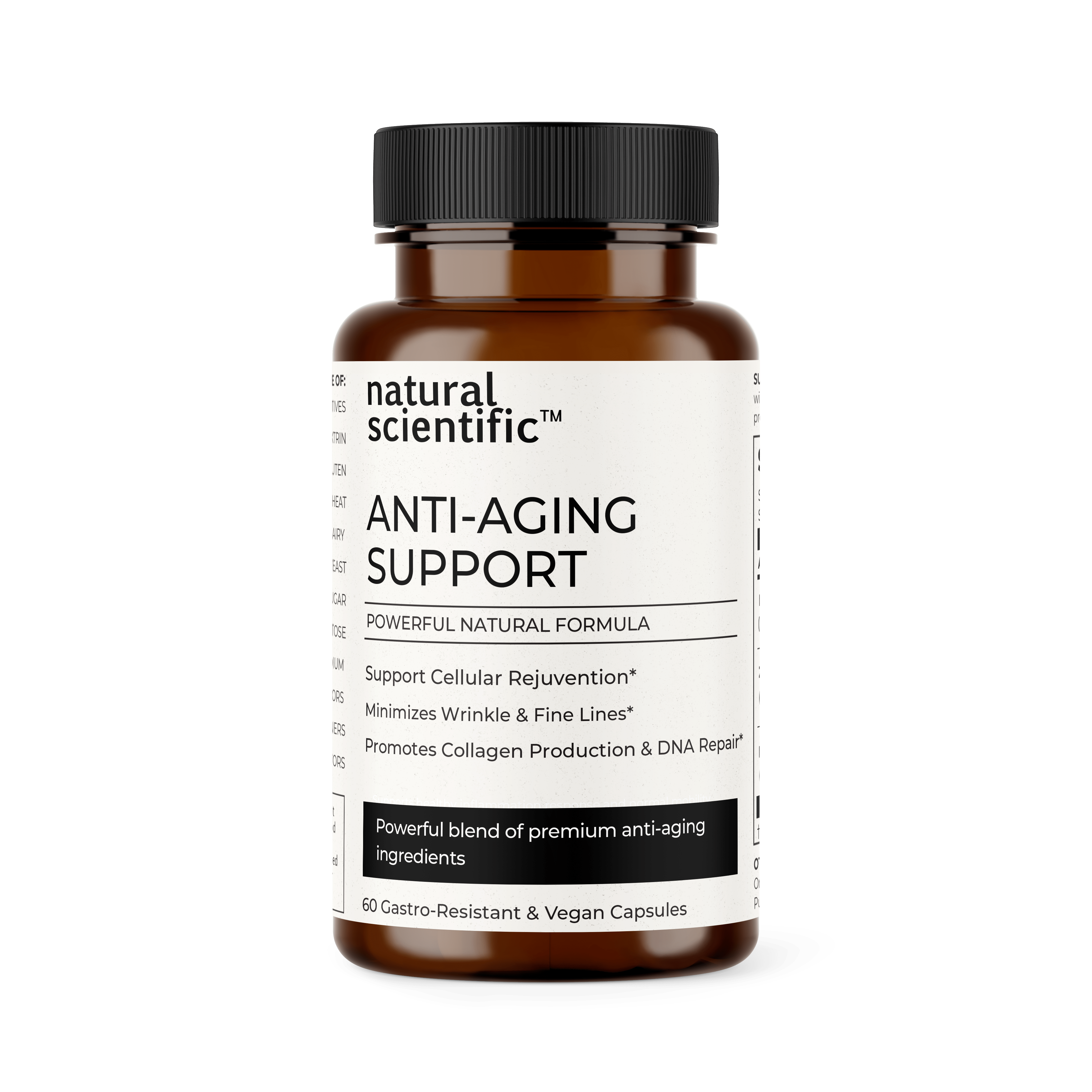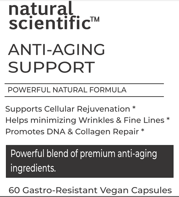 Unlock the secret to youthful vitality with Anti Aging Support. Our premium formula is expertly crafted to combat the signs of aging from within. Packed with potent ingredients like trans-resveratrol from Japanese Knotweed, CoQ10, Epigallocatechin Gallate (EGCG) from organic Green Tea, and Icariin from Epimedium, this supplement supports cellular rejuvenation, enhances skin elasticity, and promotes DNA and collagen repair. Experience the benefits of Anti Aging Support and embrace a healthier, more vibrant you. Try it today and discover the ultimate solution for maintaining youthful radiance and vitality.