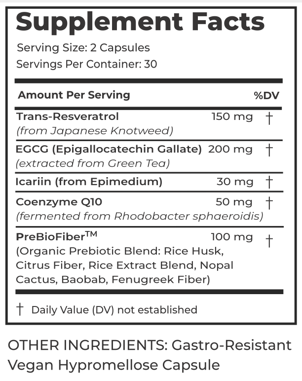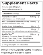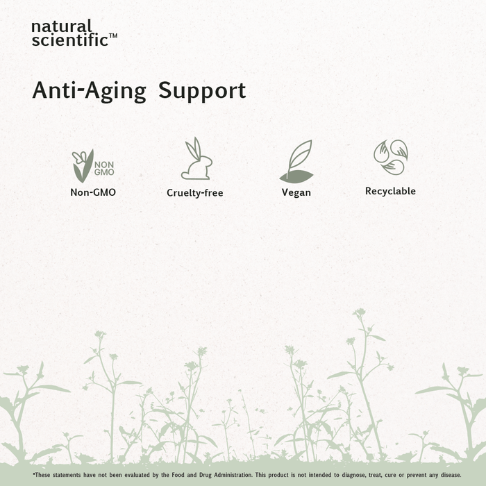 Anti-Aging Support, featuring trans-resveratrol, CoQ10, EGCG, and Icariin, supports cellular rejuvenation by boosting mitochondrial function and protecting against oxidative stress. This powerful blend aids in maintaining youthful vitality and promotes overall cellular health.