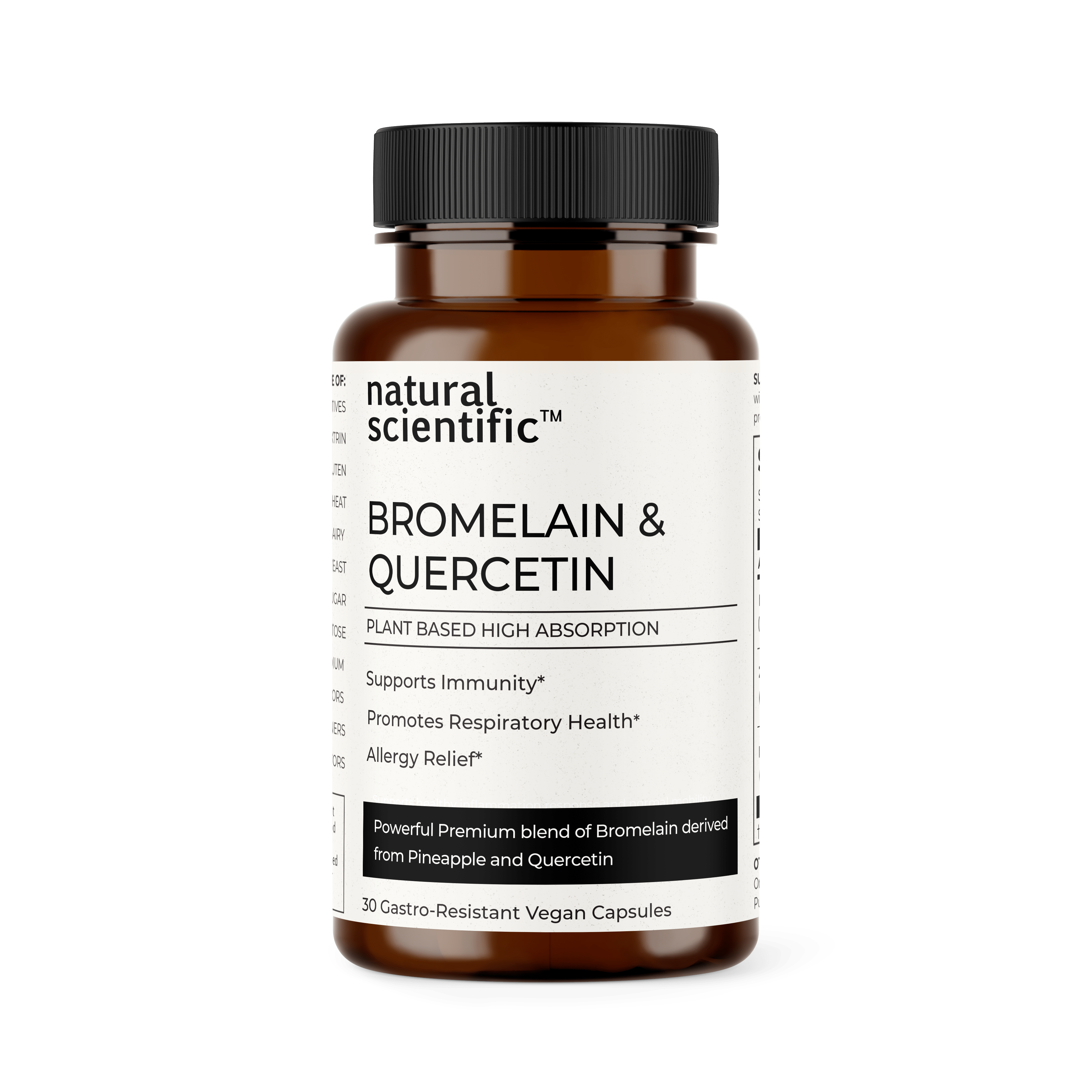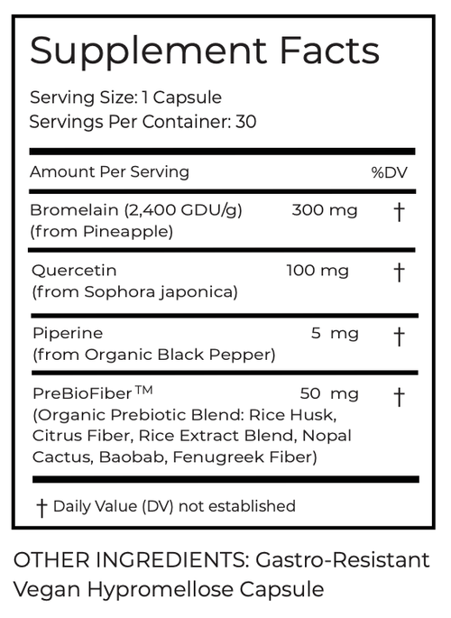Bromelain and Quercetin provide natural allergy relief by reducing histamine levels and inflammation. Quercetin stabilizes cells that release histamine, minimizing allergic responses. Bromelain, with its anti-inflammatory properties, helps reduce swelling and congestion. Together, they provide a powerful defense against seasonal allergies.*