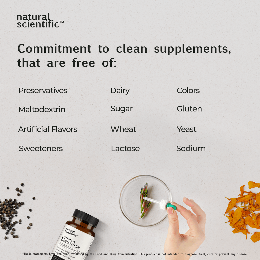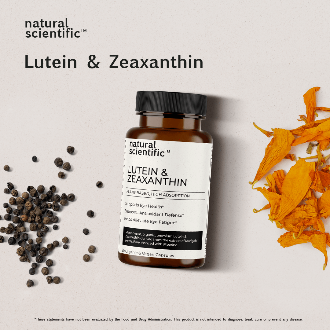 Introducing Natural Scientific Lutein & Zeaxanthin, a bioenhanced, plant-based formula for eye health crafted from the potent extract of Marigold petals (Tagetes erecta). This supplement provides a potent daily dose of 25 mg of lutein and 5 mg of zeaxanthin, aiming to support and maintain optimal eye function.*