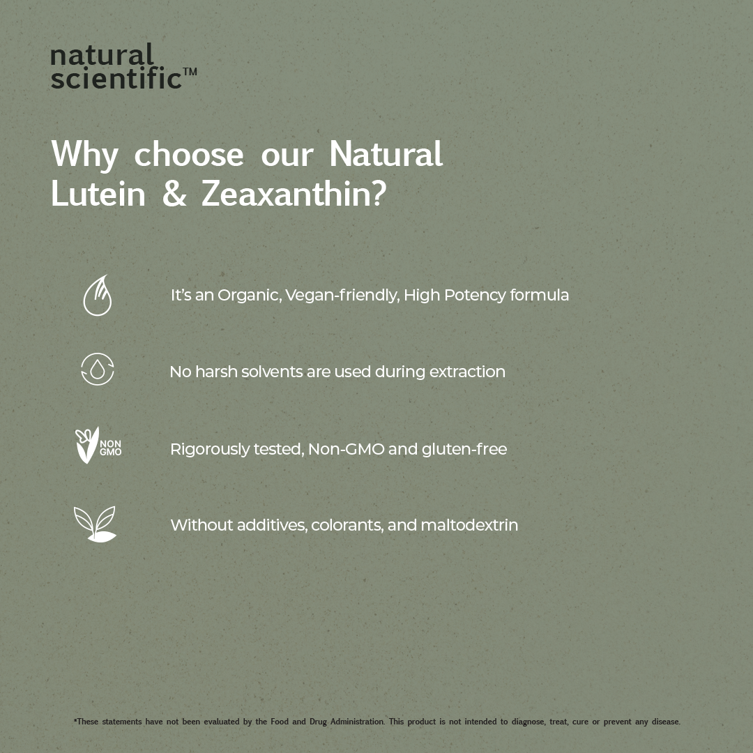 Embrace the essence of eye wellness with Natural Scientific Lutein & Zeaxanthin, a bioenhanced, premium plant-based formula for eye health and function, crafted from the potent extract of Marigold petals. This supplement provides a high potent daily dose of 25 mg of lutein and 5 mg of zeaxanthin!*