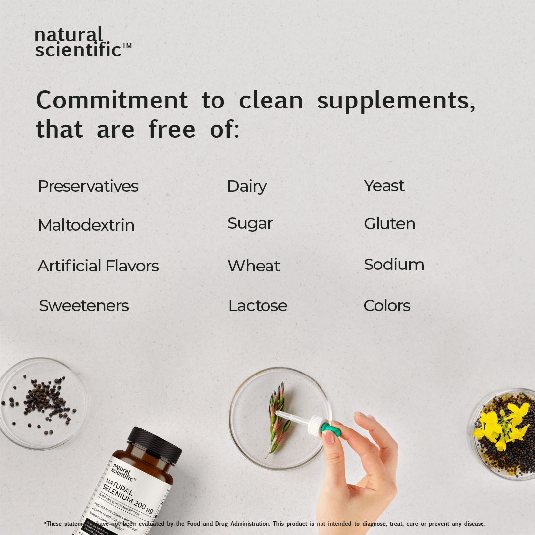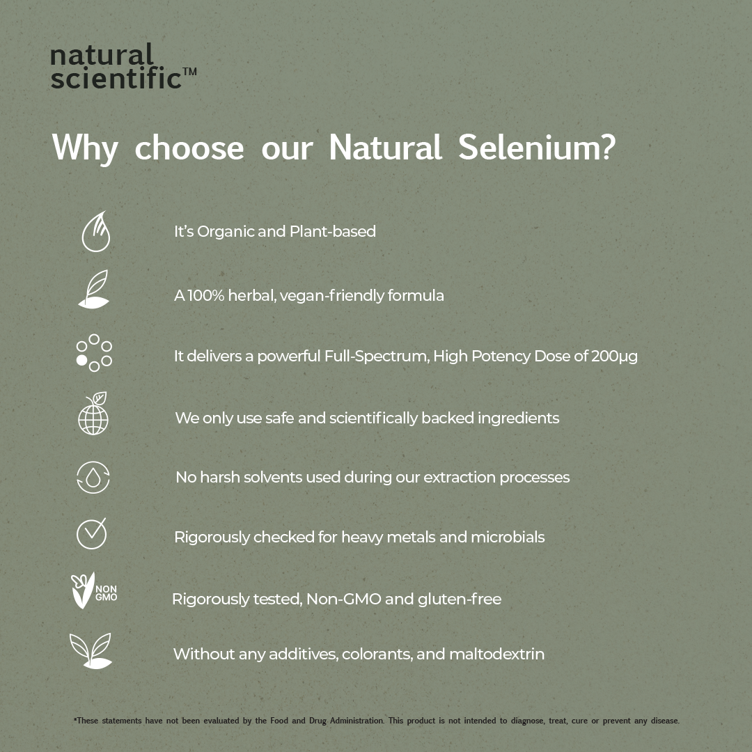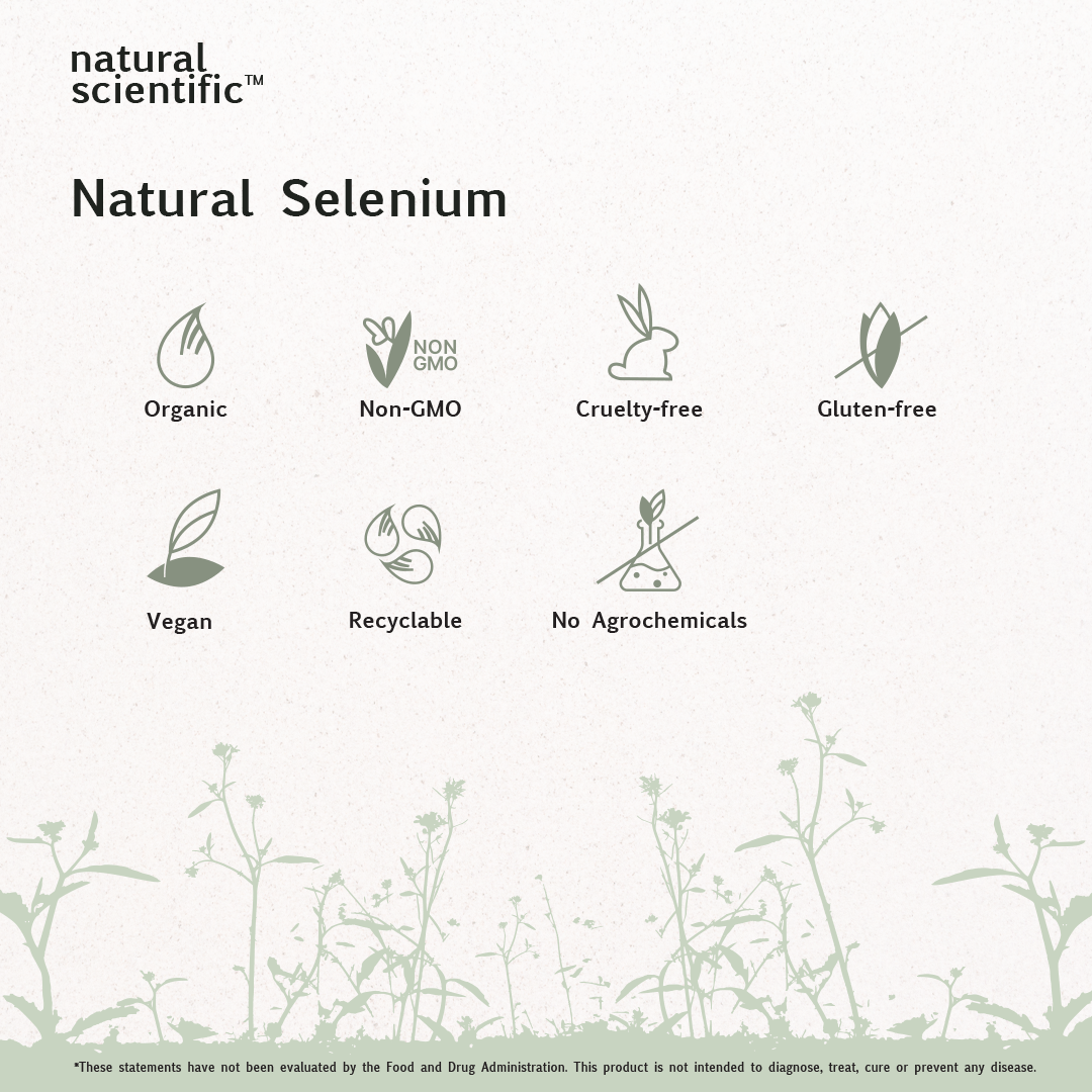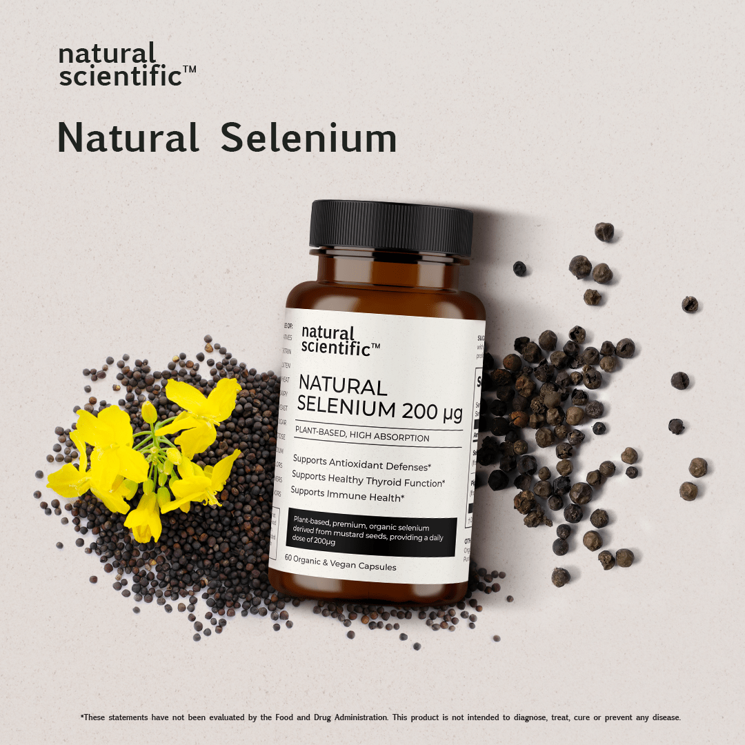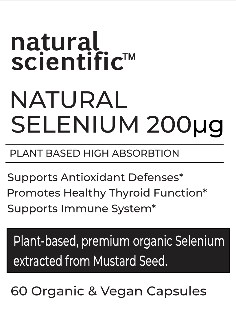 Natural Scientific Natural Selenium stands out from conventional selenium supplements by offering a plant-based, organic source derived from mustard seeds, providing a daily dose of 200mcg.*