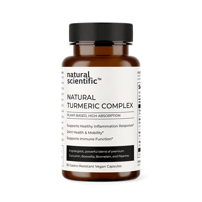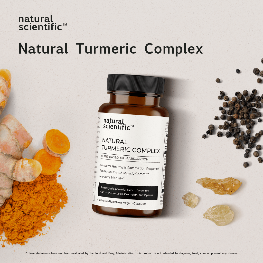 Embark on a journey to balanced health with Natural Scientific Natural Turmeric Complex, a plant-based anti-inflammatory supplement meticulously crafted to support a healthy inflammation response, promote joint and muscle comfort, and enhance overall mobility. Harnessing the potent properties of Curcumin, Boswellia, and Bromelain, this dynamic trio addresses inflammatory challenges naturally. The addition of piperine ensures optimal bioavailability of Curcumin.*