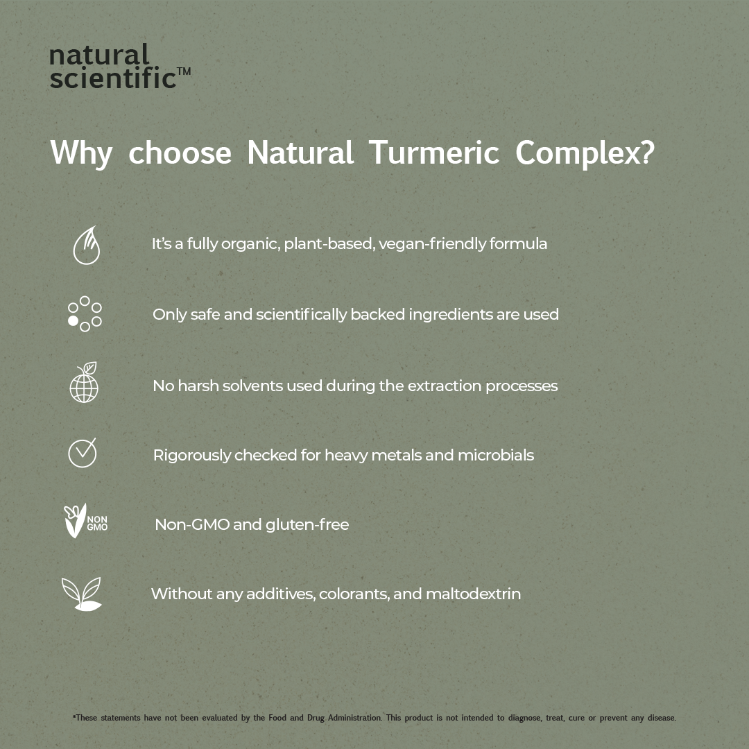 Natural Scientific Natural Turmeric Complex is your ally in maintaining a balanced inflammatory state, fostering joint and muscle well-being, and enhancing overall flexibility. Embrace this holistic supplement and let the synergy of these exceptional ingredients empower your journey towards optimal health and vitality.*