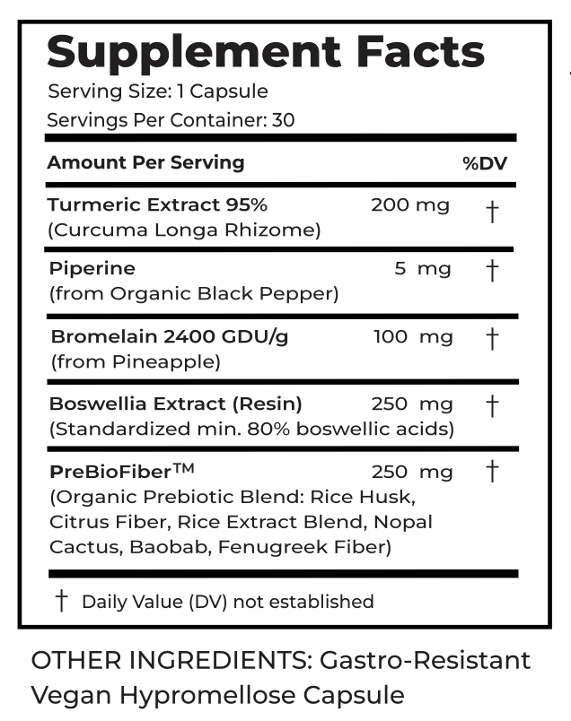 Leverage the power of nature with our Natural Turmeric Complex! This precision-crafted blend of Curcumin, Boswellia, and Bromelain, enhanced by Piperine, supports the body’s natural inflammatory response, and supports joint and muscle health for overall well-being. Nurture your body with this potent formula, while enjoying the added benefits of natural antioxidant support. Support your wellness journey today and let nature’s bounty be your guide.*