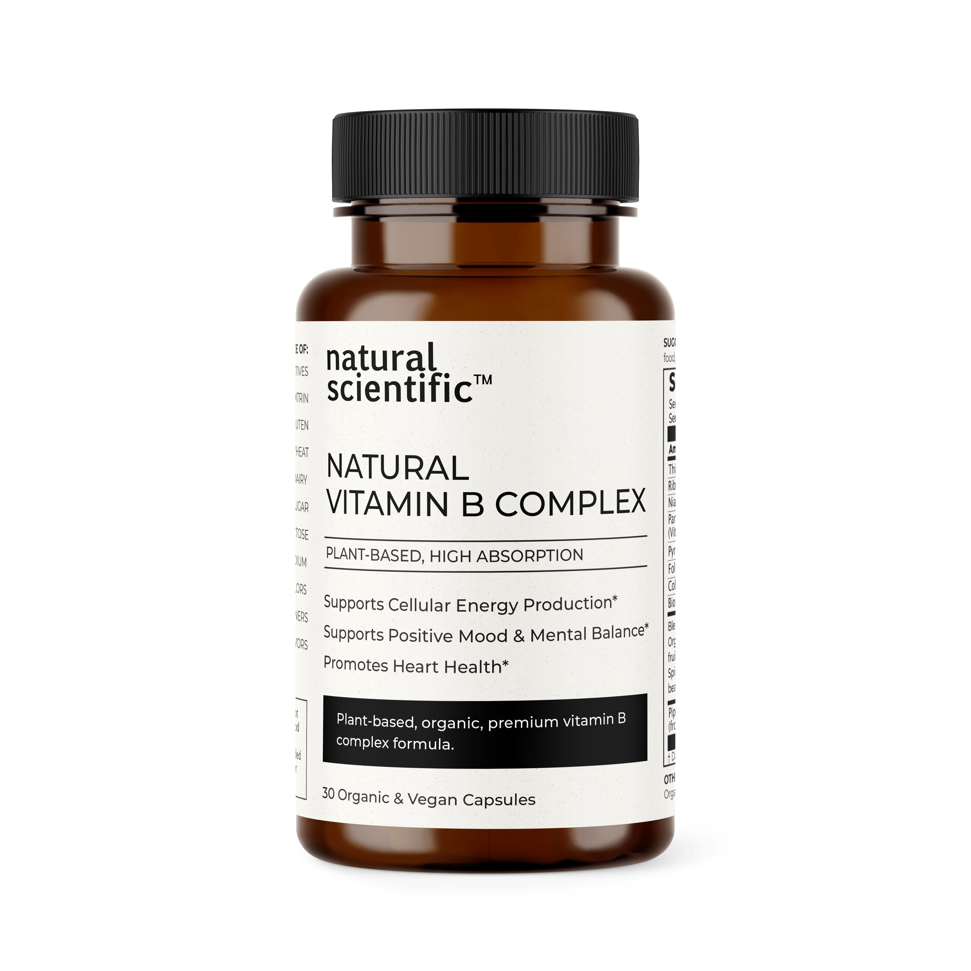 Natural Scientific Natural Vitamin B Complex is a plant-based, organic blend of essential B vitamins derived from organic Guava Fruit, Spirulina algal cells, Chlorella algal whole cells, Mango Fruit, Sprouted Mung Beans, Lemon Peel, and Holy Basil Leaf. The formula is additionally enhanced with organic Saccharomyces cerevisiae yeast cells and Piperine derived from organic Black Pepper.*