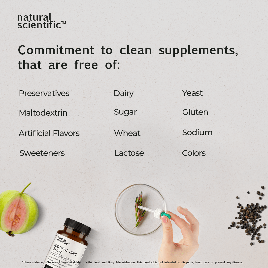 Fortify the immune system, revitalize skin, and protect your vision with Natural Scientific Natural Zinc. Our natural formula distinguishes itself from conventional zinc supplements by providing a plant-based, organic source derived from guava, offering a high daily dose of 30 mg.*