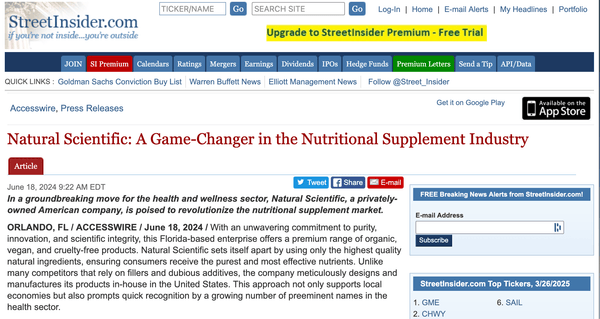 Natural Scientific has been featured in leading media outlets for our commitment to clean, effective supplements. From spotlights on our innovative manufacturing processes to news about our unique approach to supplements, here, you’ll find the latest stories about how we’re making waves in the nutritional supplement industry.