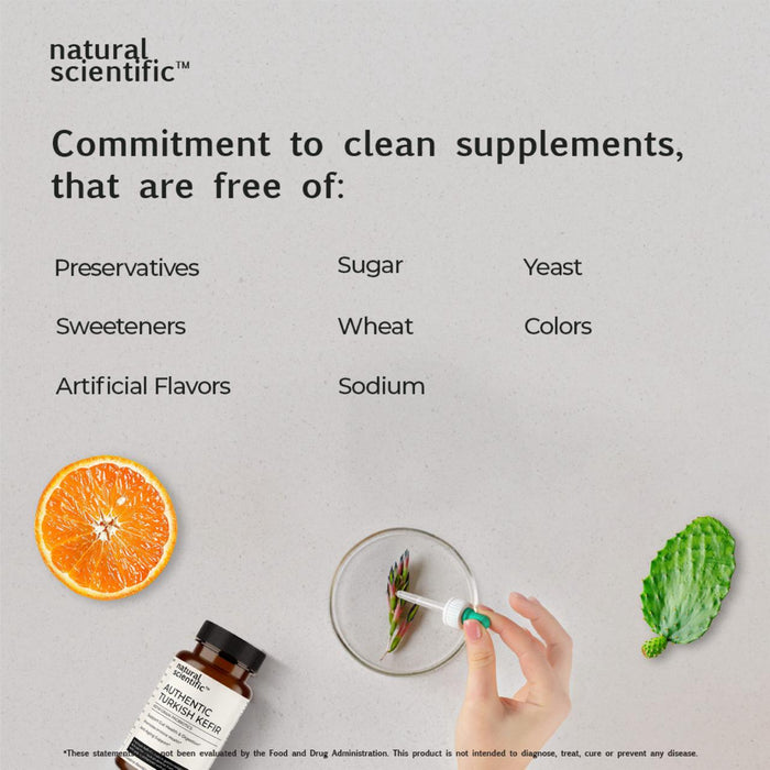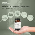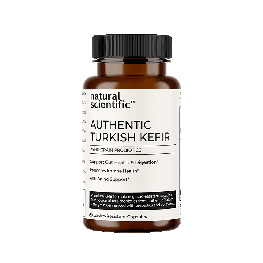 Discover a revolutionary approach to gut health with Natural Scientific Authentic Turkish Kefir. Our probiotic supplement blends centuries-old Turkish kefir grains from the Caucasus Mountains with modern innovation to deliver 100 Billion CFU of beneficial probiotics. Encapsulated in gastro-resistant capsules, this powerful kefir supplement supports healthy digestion, liver function, and balanced cholesterol levels. Boost your gut health, enhance immunity, and enjoy anti-aging benefits with this unique probiotic supplement, where ancient tradition meets modern science.